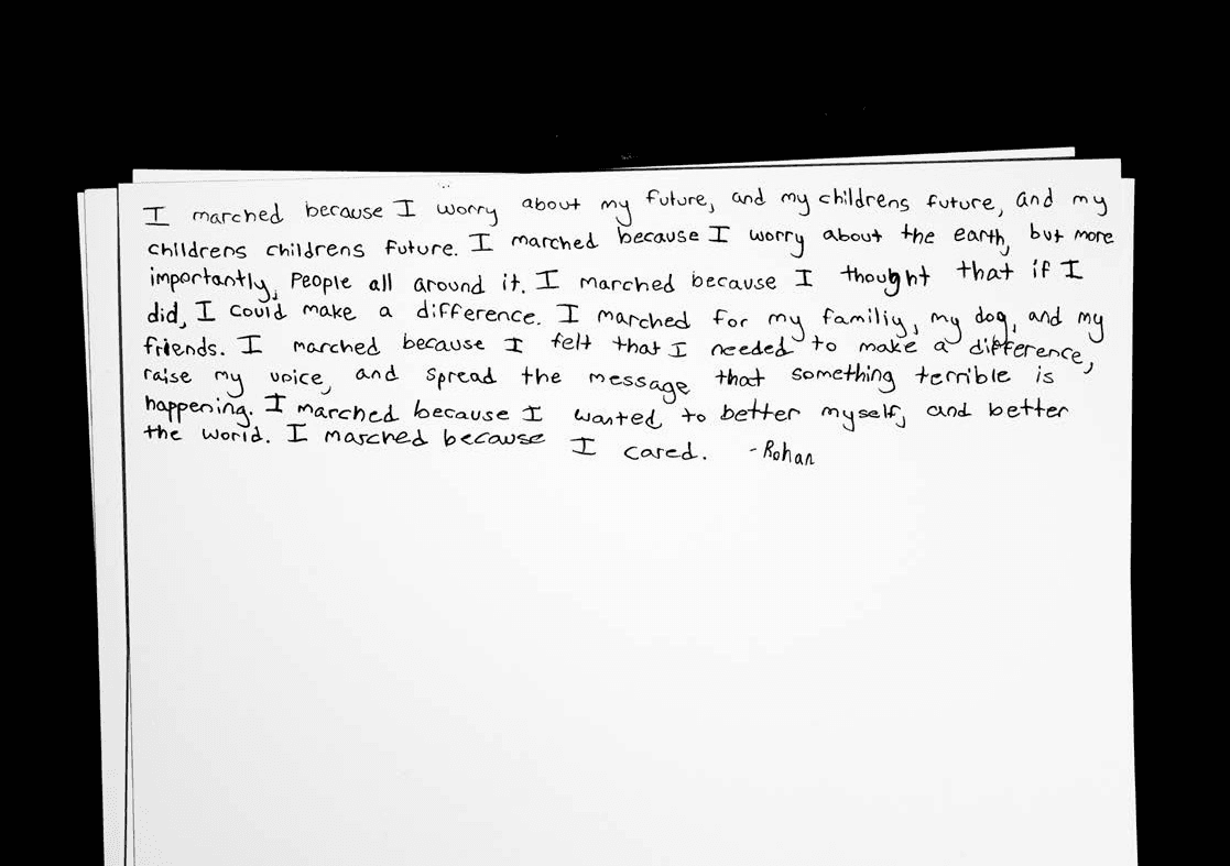 After the protest, I asked 6 young protesters to write down why they marched. For their portraits I asked them to choose a location in NYC that represented their personal connection with nature.
